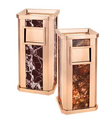 欣方圳為深圳嶺南天潤物業(yè)公司提供了一批室內(nèi)垃圾桶,材質(zhì)有鈦金類和鐵板噴塑類,外觀精美,使用價值高。 D272皇家座地?zé)熁彝耙?guī)格:300*300*685,D295垃圾桶的規(guī)格為310*310*740,采用不銹鋼經(jīng)鍍鈦處理,專業(yè)除