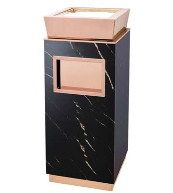 欣方圳為深圳嶺南天潤(rùn)物業(yè)公司提供了一批室內(nèi)垃圾桶,材質(zhì)有鈦金類和鐵板噴塑類,外觀精美,使用價(jià)值高。 D272皇家座地?zé)熁彝耙?guī)格:300*300*685,D295垃圾桶的規(guī)格為310*310*740,采用不銹鋼經(jīng)鍍鈦處理,專業(yè)除