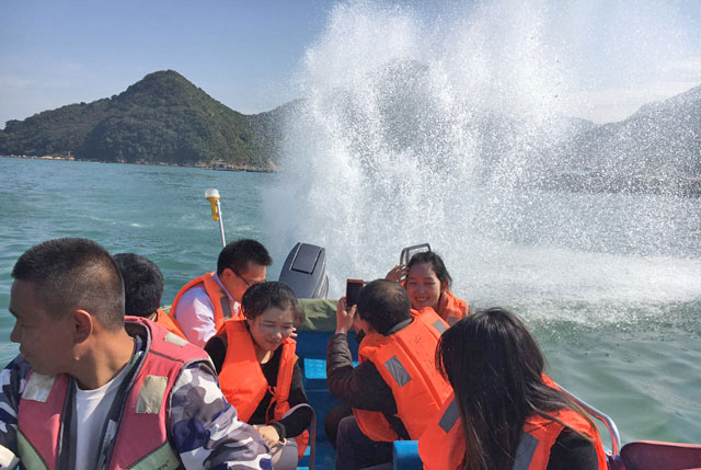 欣方圳公司每年都有幾次出去游玩或聚餐的福利,這次我們部門同事們的游玩選擇了深圳大鵬的較場尾和西涌。帶著美好的心情我們開4輛車從公司出發較場尾西涌,首站游玩選擇較場尾,較場尾沙灘比較狹長素有“人文古鎮,生態綠城”之稱,是位于中國深圳的唯一一條有海岸線的村子。是大鵬半島唯一保存完好、且緊靠海岸線的原始村莊,風景秀美。得天獨厚的自然和人文資源,讓這個曾經的小漁村在新時期煥發出新的發展機遇。我們乘坐幾艘游艇環島從不同的角度欣賞這海灘的美。