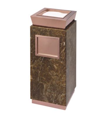 • 產品材質:采用天然的大理石與優質冷軋鋼板或不銹鋼鋼板制作而成,四面大理石用鋼板螺絲固定于桶體,有內桶,方便提倒垃圾,桶頭煙灰盅可放白石子可清洗,鋼板經折彎沖壓一次性成型。產品一律用室外粉靜電噴塑,經過180°的高溫,延長垃圾桶使用壽命,顏色持久不變亮麗如新。
