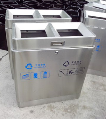 欣方圳分類不銹鋼垃圾桶采用201優質不銹鋼材質制作,專業焊接打磨成型,產品表面圓滑光澤。