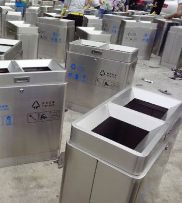 分類不銹鋼垃圾桶工廠批量生產圖