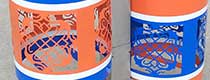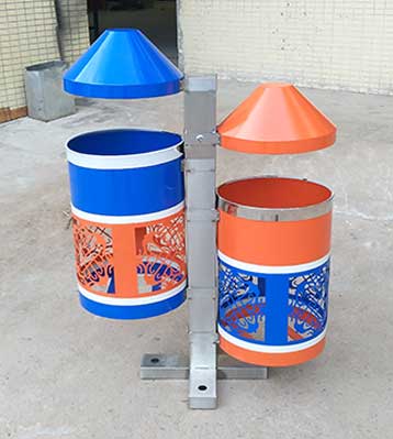 民族風情鋼制垃圾桶獨特設計!