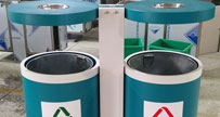 戶外鋼制烤漆分類垃圾桶批量生產(chǎn)圖