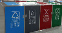 • 使用范圍:社區戶外大容量四分類垃圾桶表面光滑、亮麗,是市政、企業、學校、小區、酒店、機場、汽車站等戶外分類垃圾收集擺放的首選。
